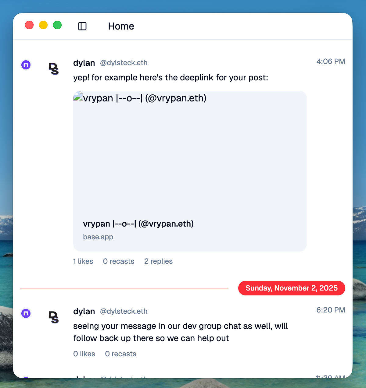 I've been circling this idea in different forms for the past few months. The first serious attempt was through Cortex: a desktop app that aggregates data from different sources — Farcaster, browser history, banking transactions, my Obsidian vault — into a unified timeline backed by local SQLite. The idea was simple: pull your data out of all the apps it's siloed in, store it locally so you own it, and give it a shape that's useful. A chronological log of everything turned out to be a surprisingly good unifying metaphor — a Farcaster cast, a browser history entry, a bank transaction, and a markdown note all fit naturally into the same timeline.